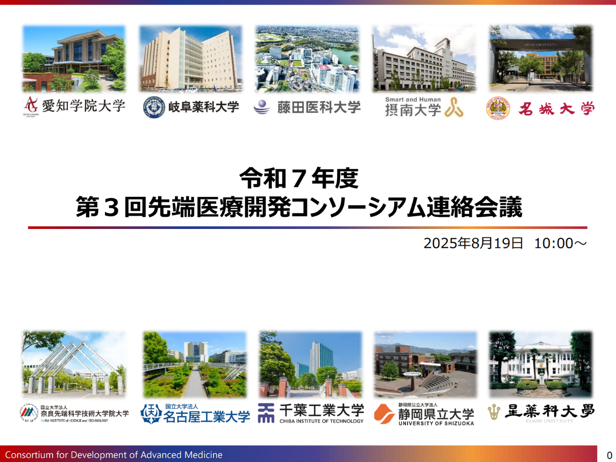 2025年8月19日(火)に、令和7年第2回先端医療開発コンソーシアム連絡会議が開催されました。