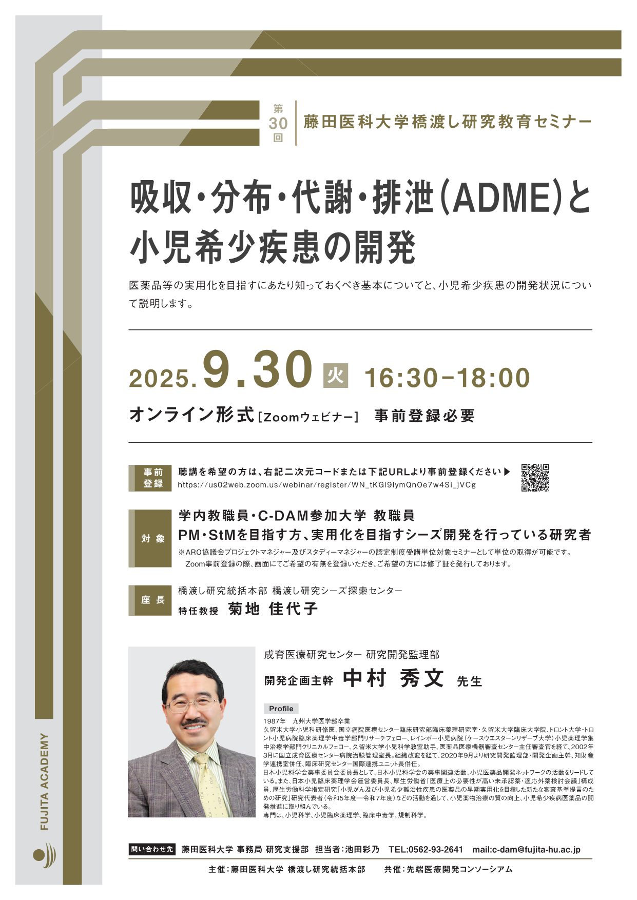 【終了】9/30(火) 第30回橋渡し研究教育セミナー開催