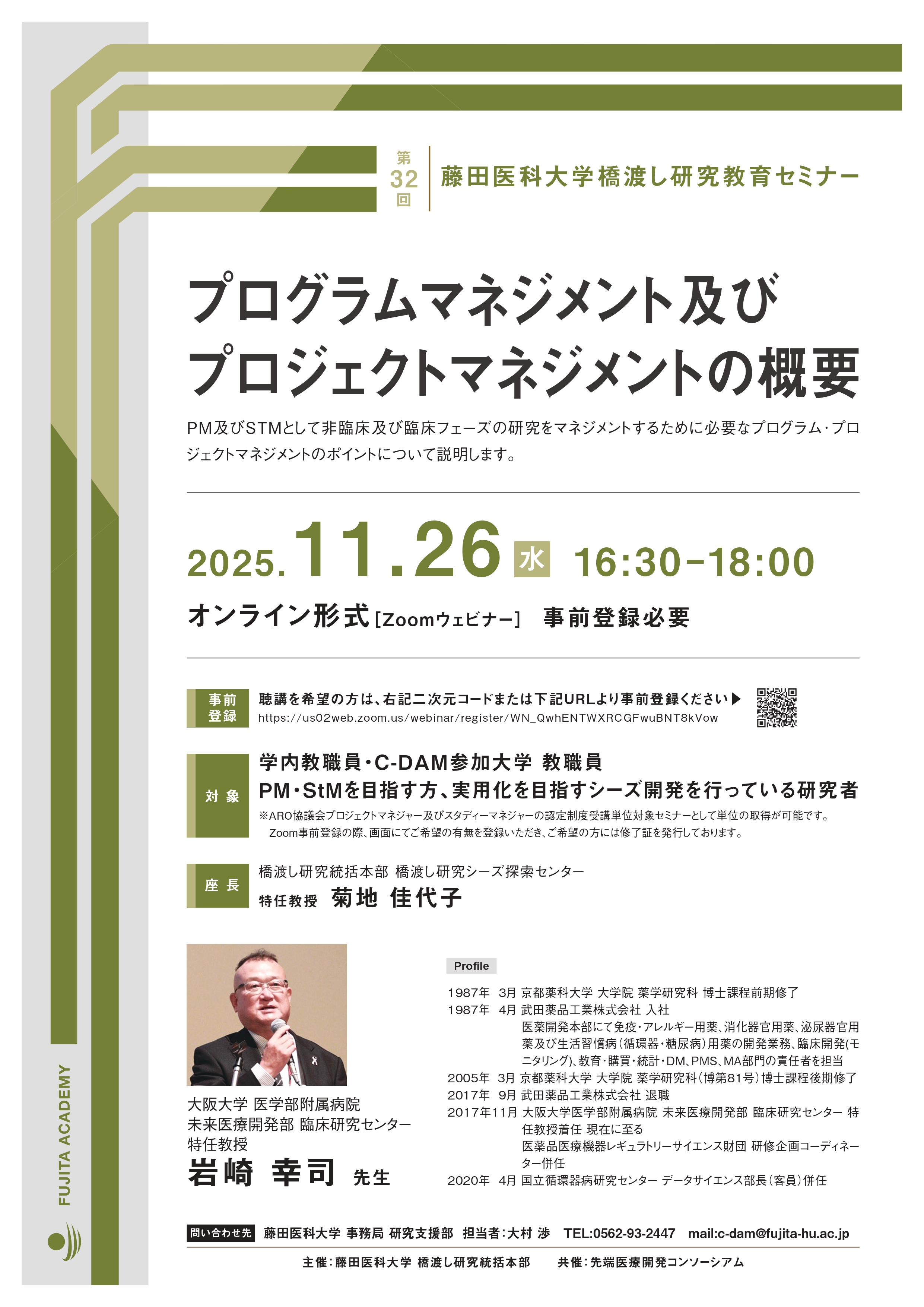 【登録中】11/26(火) 第32回橋渡し研究教育セミナー開催