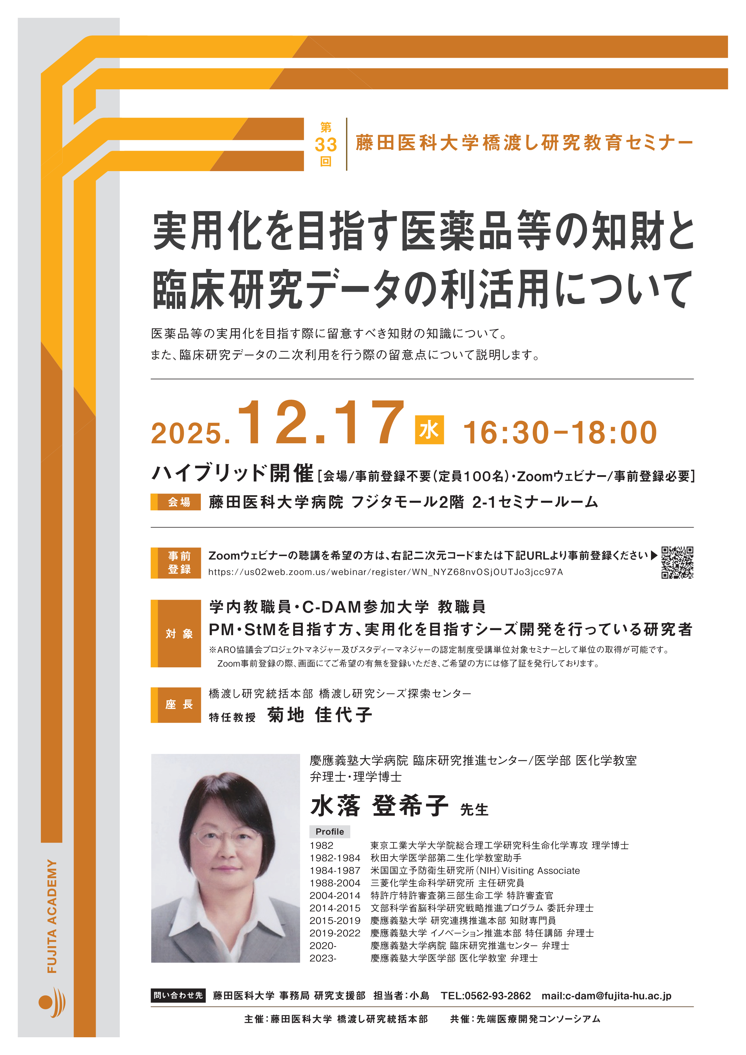 【登録中】12/17(水) 第33回橋渡し研究教育セミナー開催